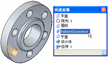 随着模型设计的发展,可能有必要对特征集中的特征逐个进行编辑。例如,您可能需要在原先具有相同特征参数(如直径、深度等)的一组孔中对一个孔的直径进行修改。可使用“分离”和“断开”命令来分隔作为一个较大集中一部分的一个或多个特征。