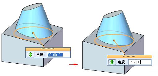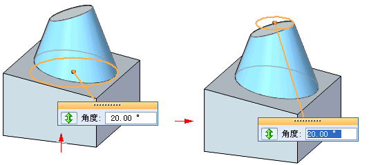 可使用“角度”图标来控制要锁定的圆锥的端点。