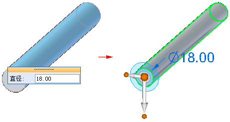 也可通过键入新的圆柱直径来编辑圆柱的直径。