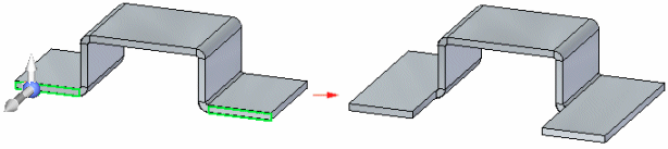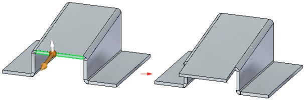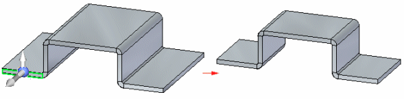 厚度链在移动操作期间保持通过折弯连接的厚度面。设置厚度链选项后,当移动厚度面时,其他相连的面也会一起移动。