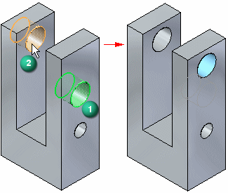 修改一个或多个选定面的位置和方向,从而使它们与零件上的某个目标面有同心关系。可使用命令条上的选项来指定要如何使选定面与目标面几何相关。
