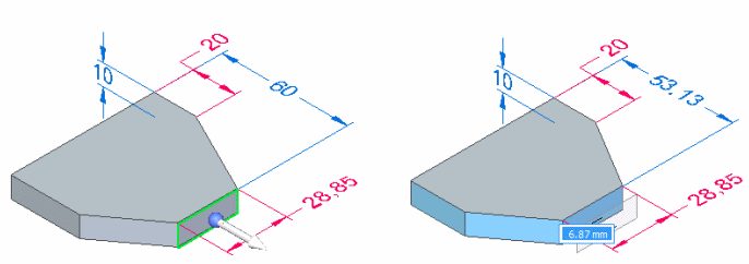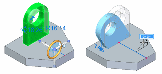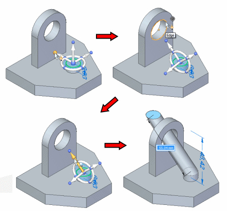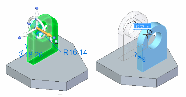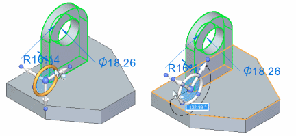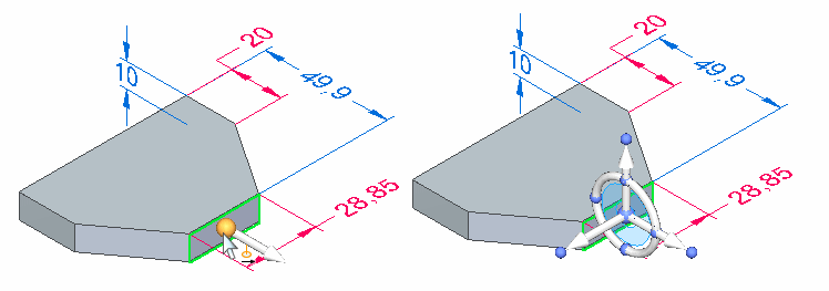 然后可单击方向盘上的主轴箭头来移动选定面。相邻面自动更新。