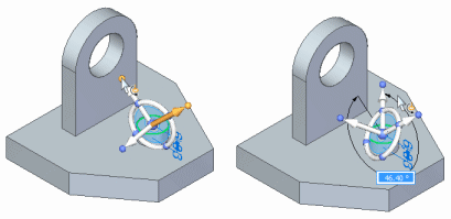 原点旋钮用于重新定位方向盘。当原点在面上移动时,轴将与有效的几何体对齐。要在重新定位时保持方向盘的原始方向,则按住 Shift 键并单击原点旋钮。