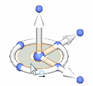 单击原点把手时会显示所有方向盘部件,并将光标附到原点上,从而可以自由移动方向盘。