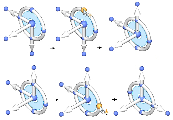 以 90°为增量更改主轴的方向