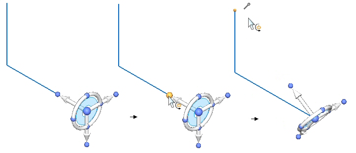 按下 Shift 键,并将方向盘原点拖动至新位置。如果将方向盘原点拖至边中点附近,原点将捕捉到该中点。单击鼠标将方向盘放置在该中点处,或将原点拖至其他位置。