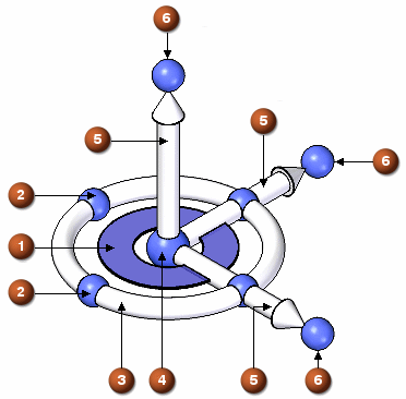 以下图表列出方向盘的各部件的部件名称和全部功能。可使用以下鼠标左键 (LMB) 操作通过方向盘操控选定的元素,或者重新定位方向盘: