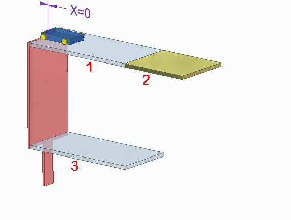 通过蓝色小车的运动,小车将移到零件 2。