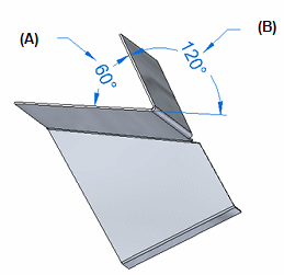 夹角 - 这是与折弯相邻的两个内面之间的角度 (A)。