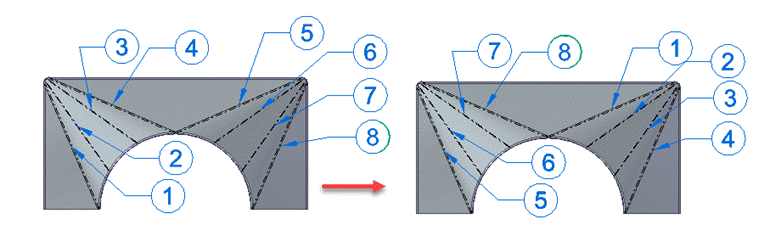 如果在某个放样弯边折弯区域中选择折弯 (A) 以重排序,