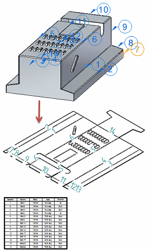 使用此工作流可创建展平图样钣金图纸及相关折弯表。