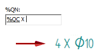 示例:孔数注释默认值为 %QC X,其中 %QC 是共面孔计数,X 是用来补全前缀的纯文本乘号。等效共面孔的数目必须大于一才能使孔数显示在标注中。