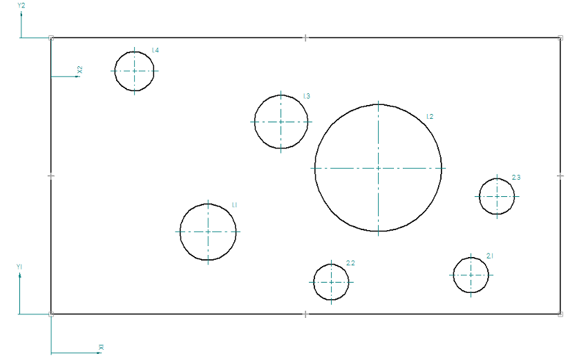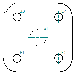 例如,当孔在图纸上不规则分隔并且从图纸页的不同角落可以更轻松地显示孔位置时,使用此选项。