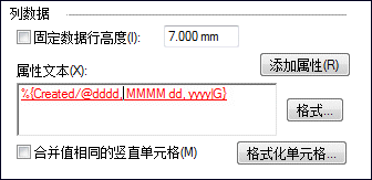 将属性文本框中显示的属性文本字符串添加到列列表中当前所选列的内容定义中。