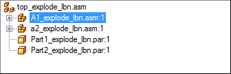 示例:假设在装配 top_explode_lbn.asm 中,您打开子装配 A1_explode_lbn.asm 的事例属性对话框,并设置用户定义 = 是,数量 = 2。