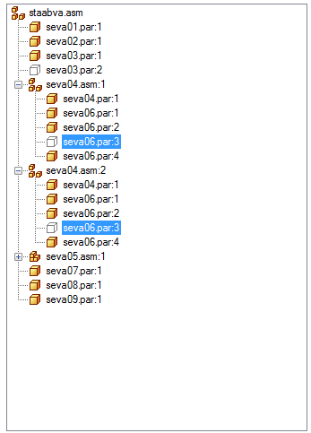 注释:不同的子装配可拥有任意相同的项。在此情况下,相同的项会得到不同的编号。