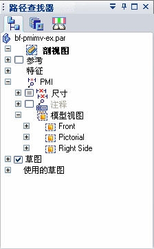 (将视图应用于模型)如果有多个 PMI 模型视图,右键单击路径查找器上的模型视图名称,然后选择应用视图。