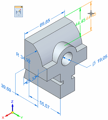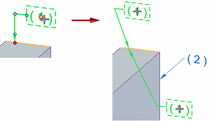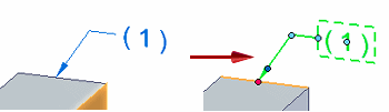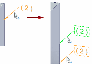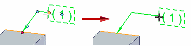 可以使用编辑手柄和尺寸编辑光标操控 PMI 元素上的端符、文本和线条。有关手柄的更多信息和查看示例,请参阅帮助主题 PMI 编辑手柄和光标。