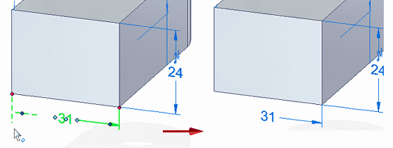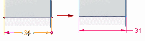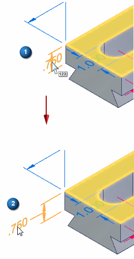 指向尺寸文本以显示值编辑光标
