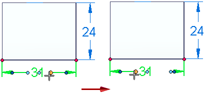 单击并拖动一个尺寸线编辑手柄,直到达到所需长度。对尺寸文本另一侧的尺寸线编辑手柄重复此操作。