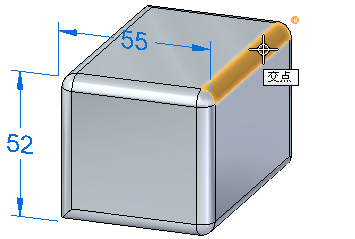 示例:此示例显示在倒圆面中为圆柱选定的交点。
