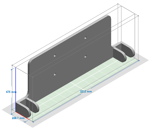 模型以默认模型颜色显示。标注尺寸的范围框显示模型的范围。