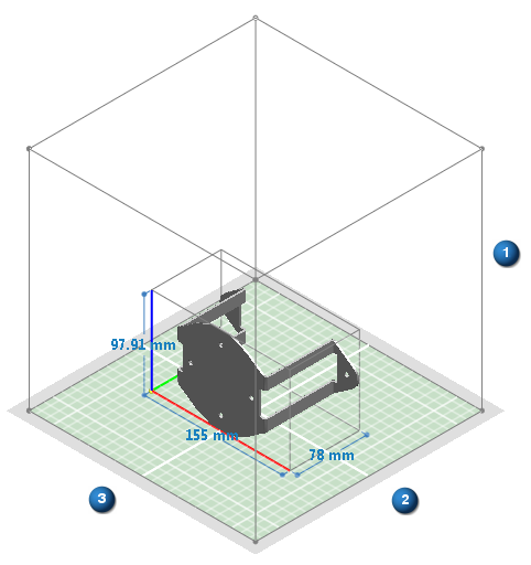 直接打印到 3D 打印机时,比较模型体积与打印机大小部分中的打印机体积信息,来确定模型是否已精确缩放以适合打印台。