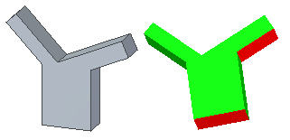 使用该命令可基于最大悬垂角度执行分析。分析完成后,将以高亮显示颜色(默认颜色 = 红色)来显示大于最大悬垂角度的所有面。小于最大角度的所有面将显示为绿色(默认颜色)。选择切换显示选项