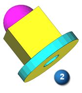 在此示例中,缝合命令用于标识要缝合在一起的曲面的区域。只有具有匹配边状态的区域可以缝合在一起。选择了球曲面 (1) 和顶部平的曲面 (2)。选择预览选项来验证所选的曲面是否能成功缝合在一起 (3)。选择完成选项以完成操作。成功缝合的曲面显示在路径查找器的特征收集器中。
