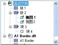 按名称列出活动文档中的所有块。当您在“块库文件列表”(上方)单击一个文件名时,也显示外部块文件中包含的单个的块名称。 要放置单个块,请从“块选择”窗格拖动。 要查看块的快捷菜单,在“块选择窗格”中右键单击。 |