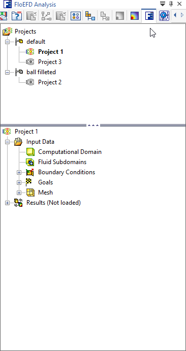 在路径查找器中显示流分析选项卡和 FloEFD 分析窗格上的命令:
