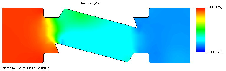 可以将流体压力和温度结果作为输入应用于设计的有限元分析。有关更多信息,请参见在线性静态或热研究中使用流体流结果。