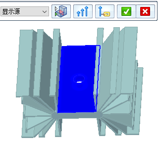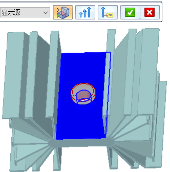 单击编辑定义手柄,以显示用于显示源和目标相连面以及用于隐藏不相连零件的命令条选项。