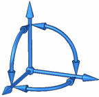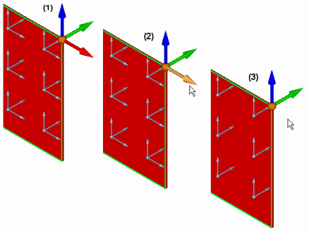 通过单击三元组中的方向箭头指定要移除的自由度。 移除实体上的一个平动自由度: