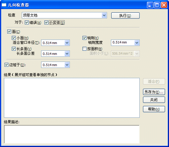 对于有限元分析,使用几何检查器对话框中的以下选项标识可以优化的模型区域。