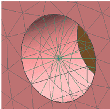 对于通过除料创建的开口,偏置边命令可围绕边或在区域上方通过划分面或曲面生成更好的网格。如下表所示,在通过围绕除料偏置边来分割面时,除料周围的默认网格会得到改进。