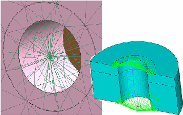 对于螺栓连接,偏置边命令会生成偏置面,表示每个螺栓、螺母和垫圈与孔接触的位置。这样会为十字轴网格生成更多连接节点,从而更好地表示螺栓。