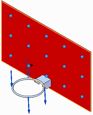 对篮圈周围进行放大,然后选择篮圈支架的背面作为源 面。如有必要,使用“快速选取”。