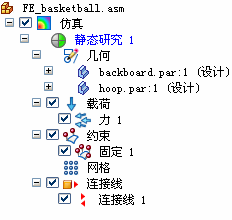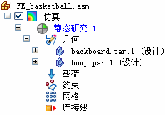 将显示仿真选项卡以查看新研究。展开几何体节点以显示选定的零件。