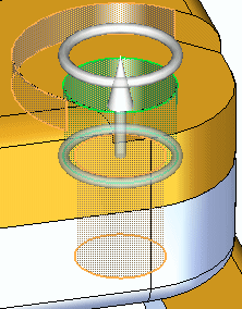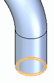 使用“快速选取”,选择 pipe_flange.par 中的管道弯边的前面作为目标面,然后右键单击以接受。