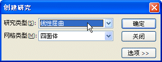 使用屈曲分析确定在断开前手杖开始变形的载荷值。本教程中使用的研究参数为: