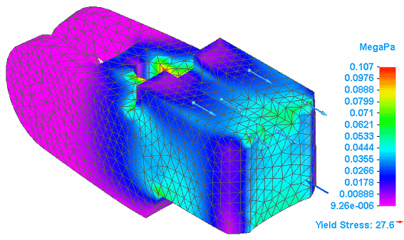片刻之后,处理完成,且应力结果将以百万帕斯卡 (MegaPa) 为单位显示。