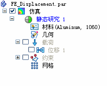 复制的研究将添加在仿真研究导航器窗格的底部,并命名为 Static Study 2。位移载荷和固定约束随之一起复制。