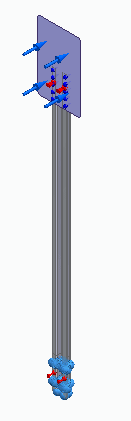 使用线性静态分析来确定标杆上气压(由风速来度量)所造成的应力。标杆装配包含实体零件和钣金件,需要混合网格(四面体和曲面)。