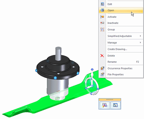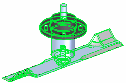 在图形窗口或装配路径查找器中,选择所有三个零件(Machined Hub.par、blade.par 和 B-121-L.par)。单击命令条上的接受。