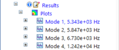 在此示例中,结果标识了模态 1 至模态 4 的以下固有频率。