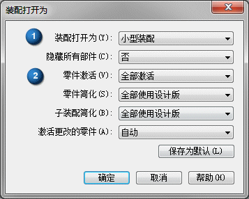 在打开文件对话框中,找到并选择文件 FE_Mower Blade Assy.asm,然后单击更多。