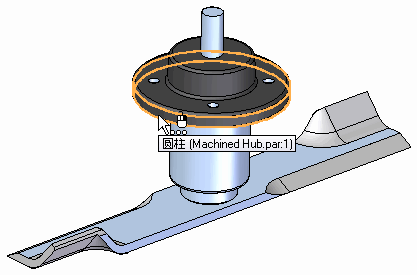 选择 Machined Hub 底部的圆柱面和平面;右键单击以接受。