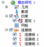 在装配模型以及仿真窗格中都可以看到这些连接件。