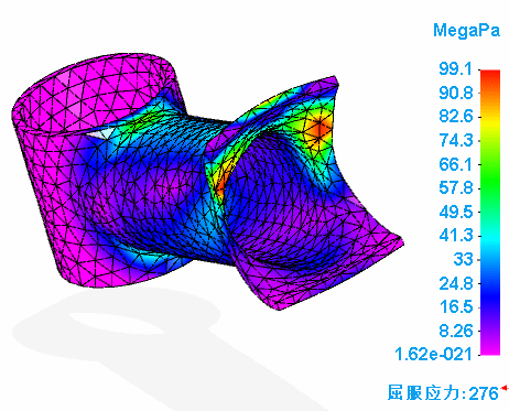 片刻之后,即已对零件划分网格并求解。应力结果将显示在仿真结果环境中。